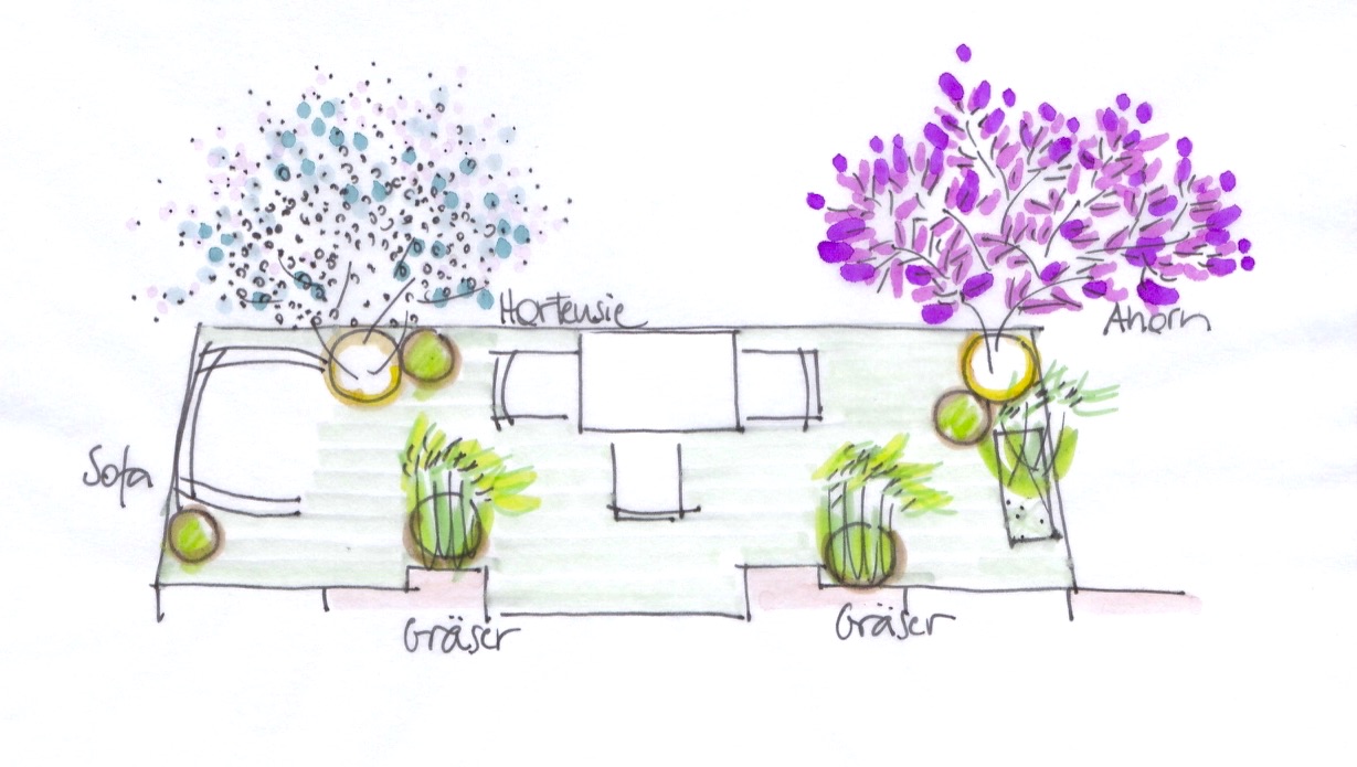 Der Platz auf der schönen, neuen Terrasse ist nicht sehr groß – dennoch soll er gemütlich gestaltet sein.